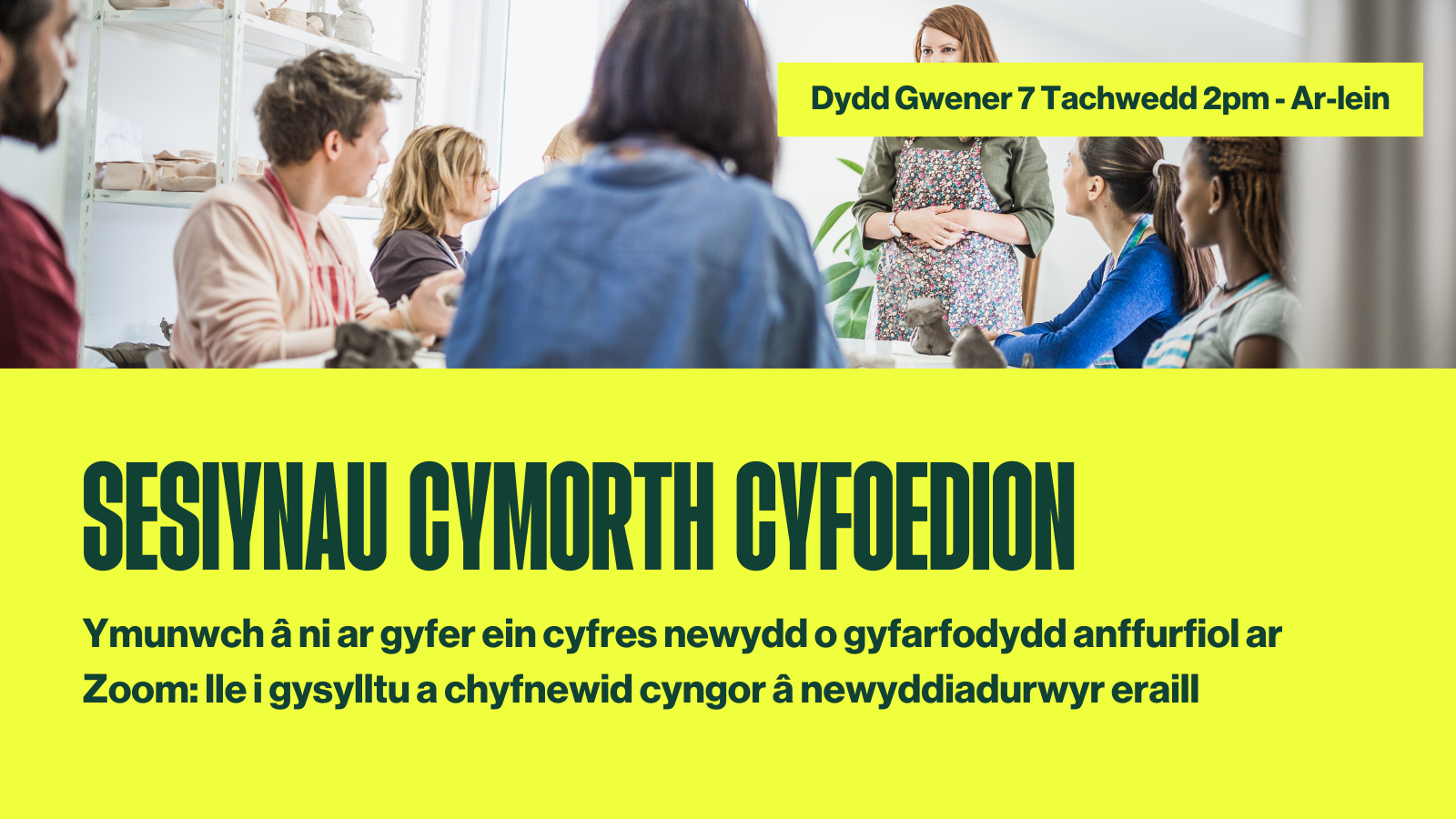Bydd y sesiwn nesaf yn cael ei gynnal ar-lein rhwng 6.30pm a 8.00pm ddydd Mercher 29 Hydref. Cynhelir y digwyddiad ar Zoom a gallwch gofrestru yma. Mae croeso i bob aelod fynychu, ac mae’r digwyddiad am ddim.